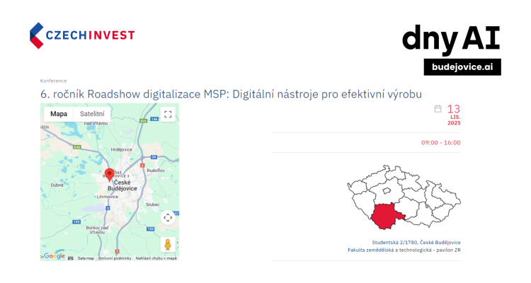 6. ročník Roadshow digitalizace MSP: Digitální nástroje pro efektivní výrobu