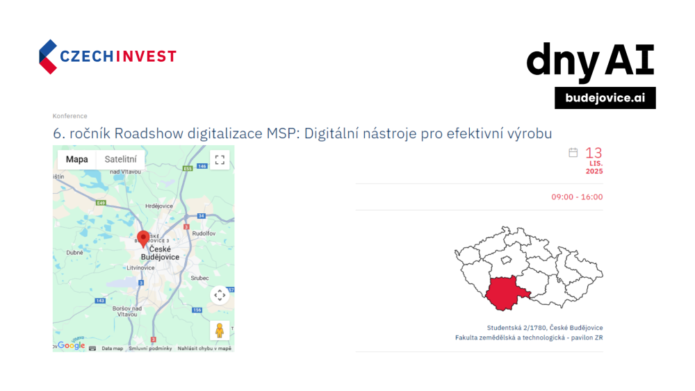 Připojte se k šestému ročníku Roadshow digitalizace MSP, který tentokrát zavítá do Českých Budějovic.