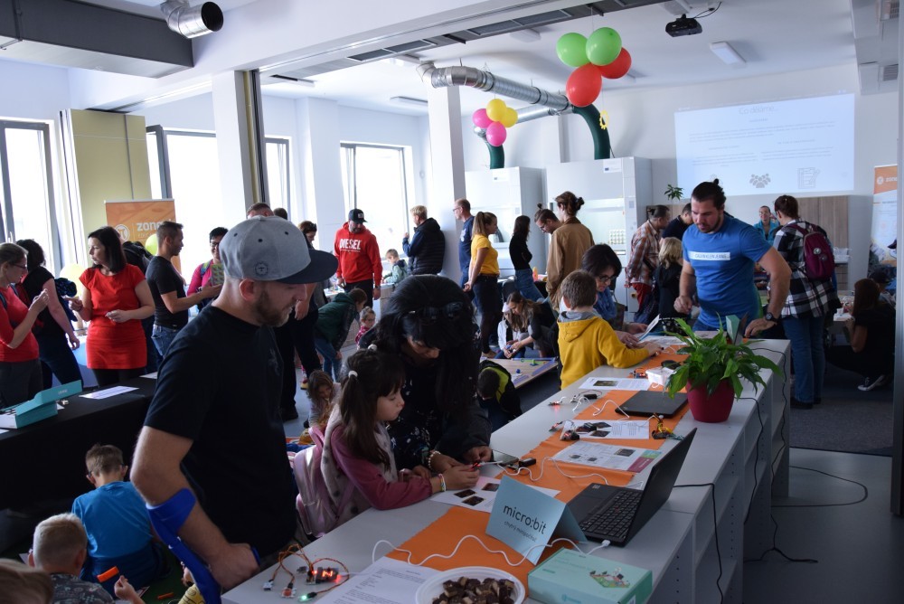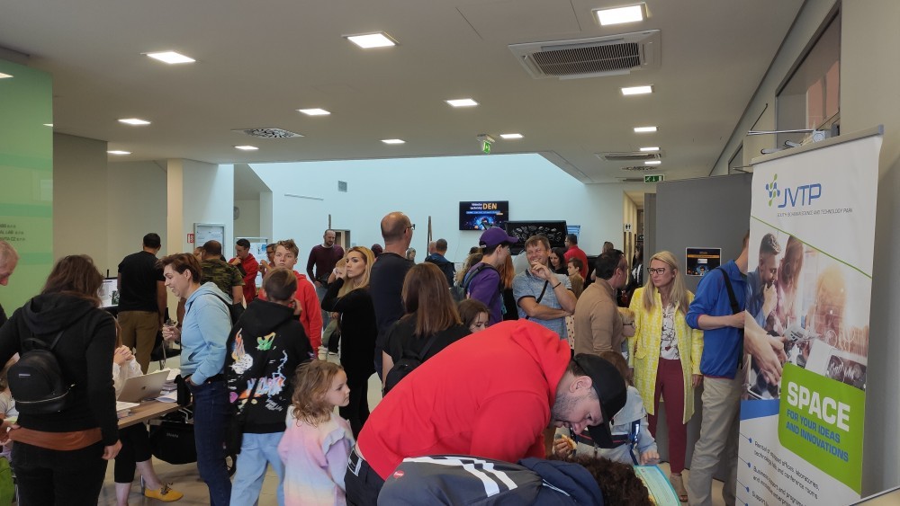 V sobotu 7. října bylo v JVTP opravdu velmi živo. Zvídaví návštěvníci, děti a jejich rodiče, toužící po poznání a zábavě v oblasti vědy a techniky, přicházeli do JVTP po celý den.500 účastníků, 7 stanovišt, taková je bilance úspěšné akce, která proběhla v prostorách JVTP. Akci jsme uspořádali v rámci aktivit Jihočeského Digi Hubu.