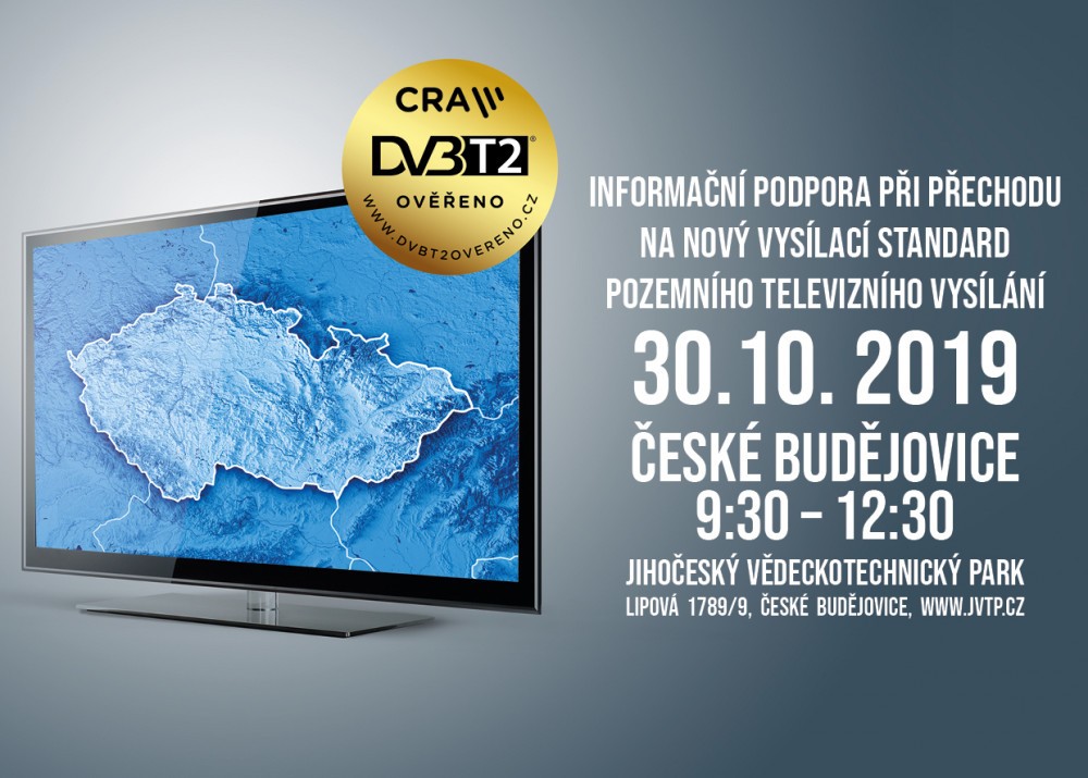 Dne 30.10.2019 od 9:30 se v prostorách Jihočeského vědeckotechnického parku v Českých Budějovicích uskuteční akce týkající se velké části českých televizních diváků, neboť se jich se dotkne významná technologická změna v televizním vysílání – přechod na novou generaci digitálního vysílání, označovaném jako DVB-T2.
