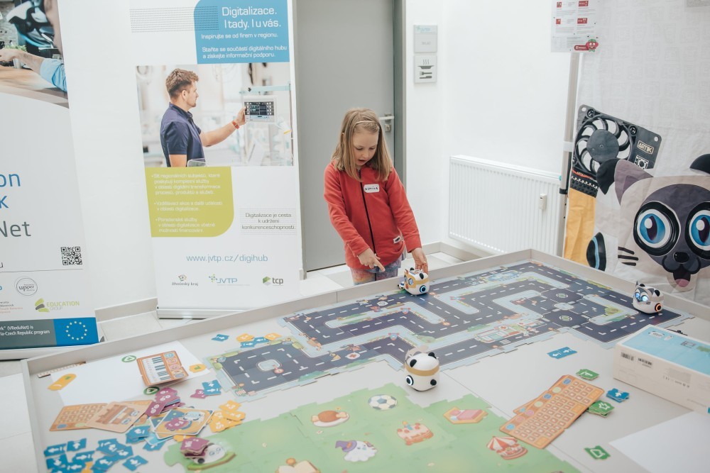 V sobotu 23.4.2022 se za podpory JVTP a jeho projektu Jihočeský Digi Hub konala akce "FAMILY DAY CZECHITAS".Pro nejmenší byl připraven robot m-Tiny, interaktivní robot, který děti provedl světem her a programování po malých krůčcích. Robota se děti naučily programovat pomocí kódovacích karet a programovacího pera. Trochu větší a zdatnější programátoři si mohly vyzkoušet naprogramovat Ozoboty, mBoty, Edisony nebo si postavit projekty z LEGO WeDo. Pomocí čárových kódů děti naučily roboty různým povelům a pohybu po čáře a vytvořily si super mechanické projekty z LEGO WeDo. Poslední robot, se kterým se mohly děti potkat byl micro:bit, programovatelný vzdělávací počítač, se kterým si děti zkusily napsat první řádky kódu.