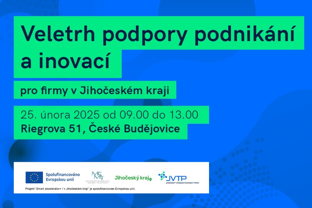 Jihočeský vědeckotechnický park se zúčastní Veletrhu podpory podnikání a inovací, který pořádají CzechInvest a Agentura pro podnikání a inovace (API). Akce se uskuteční 25. února 2025 v Českých Budějovicích a nabídne podnikatelům i firmám možnost konzultovat své projekty s odborníky a získat informace o financování a podpoře inovací.Na akci budou podnikatelé a firmy moci konzultovat své projekty s odborníky a získat informace o možnostech financování a podpory inovací.