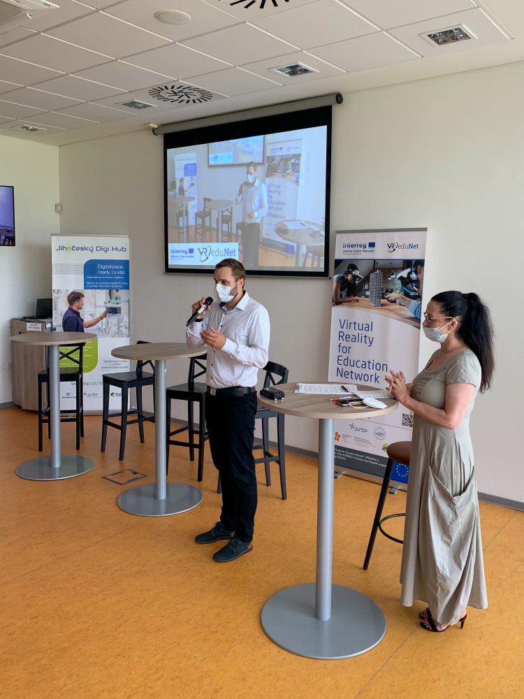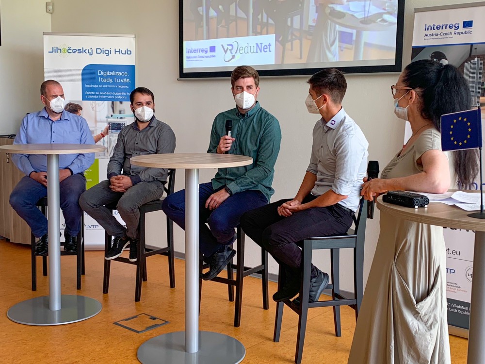 V Jihočeském vědeckotechnickém parku proběhla v tomto týdnu zajímavá událost - soubor několika panelových diskuzí k tématu virtuální a rozšířená realita.Program úterního odpoledne byl rozdělený do několika bloků. Úvodní blok byl věnován představení přeshraničního projektu VReduNet (Virtual Reality for Education Network), jehož realizaci zahájil Jihočeský vědeckotechnický park v lednu letošního roku. Projekt je založen na myšlence vzájemného poznávání, budování vztahů a vytvoření funkční přeshraniční sítě spolupracujících subjektů zabývající se tématem využití virtuální a rozšířené reality ve firemní praxi a připraveností vzdělávacího systému tyto nové technologie absorbovat do svých vzdělávacích programů k zajištění potřebných kompetencí současných i budoucích zaměstnanců. Realizací projektu dochází k propojování vysoce specializovaných expertních týmů ve vývoji programů virtuální a rozšířené reality (VR / AR) s organizacemi, které působí v oblasti vzdělávání. Oba články jsou poté napojovány na organizace inovační infrastruktury a prostřednictvím nich především na malé a střední podniky v zapojených příhraničních regionech (Jihočeský kraj, Vysočina, Horní Rakousko). Jihočeský vědeckotechnický park z uvedených důvodů přizval ke spolupráci Pedagogickou fakultu Jihočeské univerzity, Zařízení pro další vzdělávání pedagogických pracovníků v Českých Budějovicicíh (ZVaS), školské zařízení pro vzdělávání pedagogických pracovníků Vysočina Education, technologický startup Virtual Lab s.r.o., rakouský Business Upper Austria (Biz-Up) a inovativní vzdělávací skupinu se sídlem v Linzi Education Group. Zástupci všech zapojených organizací byli na společném setkání přítomni, ať už osobně v prostorách JVTP nebo v případě rakouských partnerů online formou.