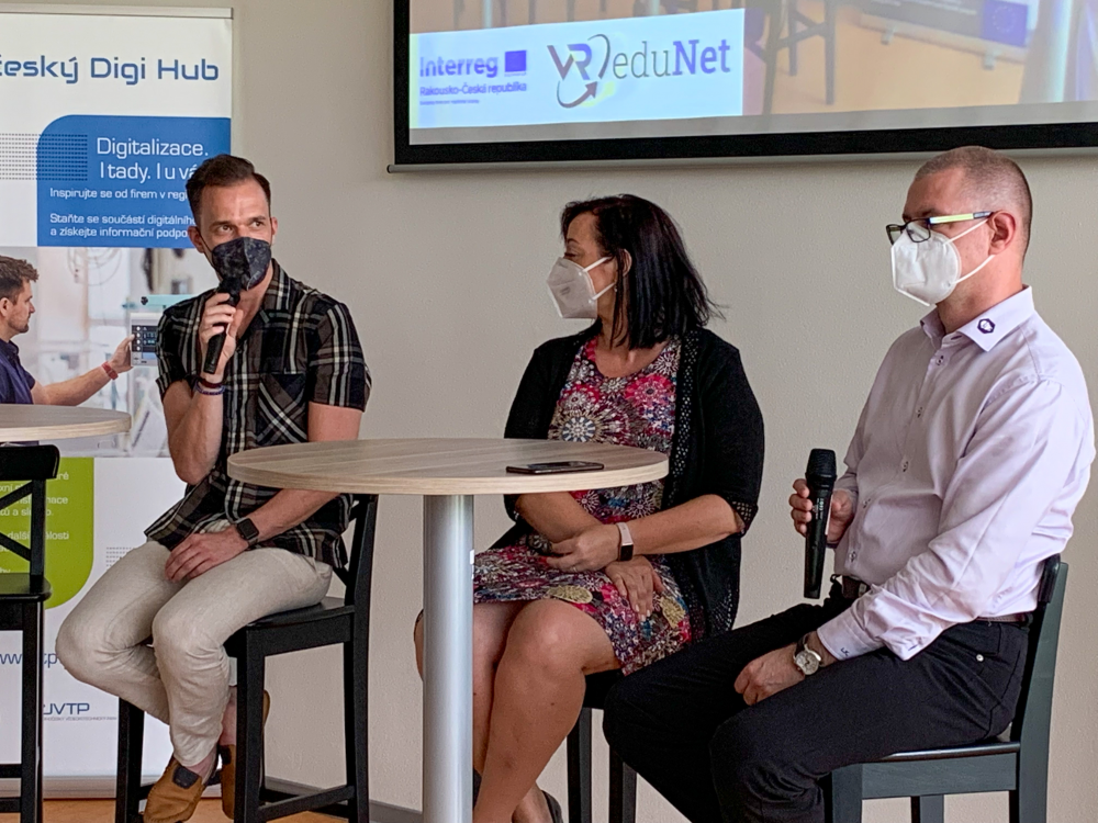 Celým odpolednem nabitým virtuální a rozšířenou realitou a možnostmi jejího využití napříč odvětvími mile provázela Mirka Čejková a ze vzájemné diskuze vystupujících a aktivní účasti publika je už nyní zřejmé, že tato technologie přináší řadu nových možností a příležitostí, neboť učí prožitkem, zrychluje proces osvojování informací a dovedností, efektivně prohlubuje znalosti, vtahuje do informačních a rozhodovacích procesů, zvyšuje zapamatovatelnost, podporuje představivost. Těšíme se, že díky projektu VReduNet budeme ve spolupráci s našimi partnery moci nalézat další a další možnosti této technologie, otevírat dveře, bořit bariéry a efektivně a zodpovědně implementovat virtuální a rozšířenou realitu do institucionální sféry a prostředí malých a středních firem v Jihočeském kraji, na Vysočině a v Horním Rakousku.