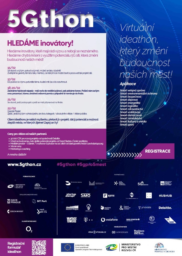 5Gthon je závěrečnou akcí projektu Podpora 5G sítí v oblasti Smart Cities, coby nesmělého průkopníka v rozvoji chytrých aplikací a budování digitální infrastruktury v ČR. Cílem ideathonu je najít chytrá řešení pro rozvoj a budoucnost českých měst s využitím aplikací připojených v 5G síti. A to takových řešení, aby mohli lidé o svých městech hovořit jako o Smart Cities.