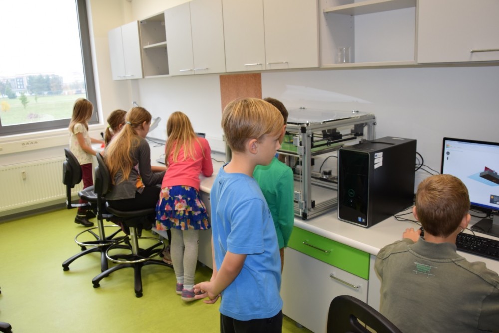 Na pracovišti 3D tisku byla představena ukázka této metody, která pomocí postupného nanášení materiálu vytváří předem naprogramovaný model. Žáci tak viděli při práci tiskárnu, která přímo před jejich očima vytvářela zadaný výrobek. V této laboratoři si vyzkoušeli pomocí programu vytvořit vlastní návrh výrobku.