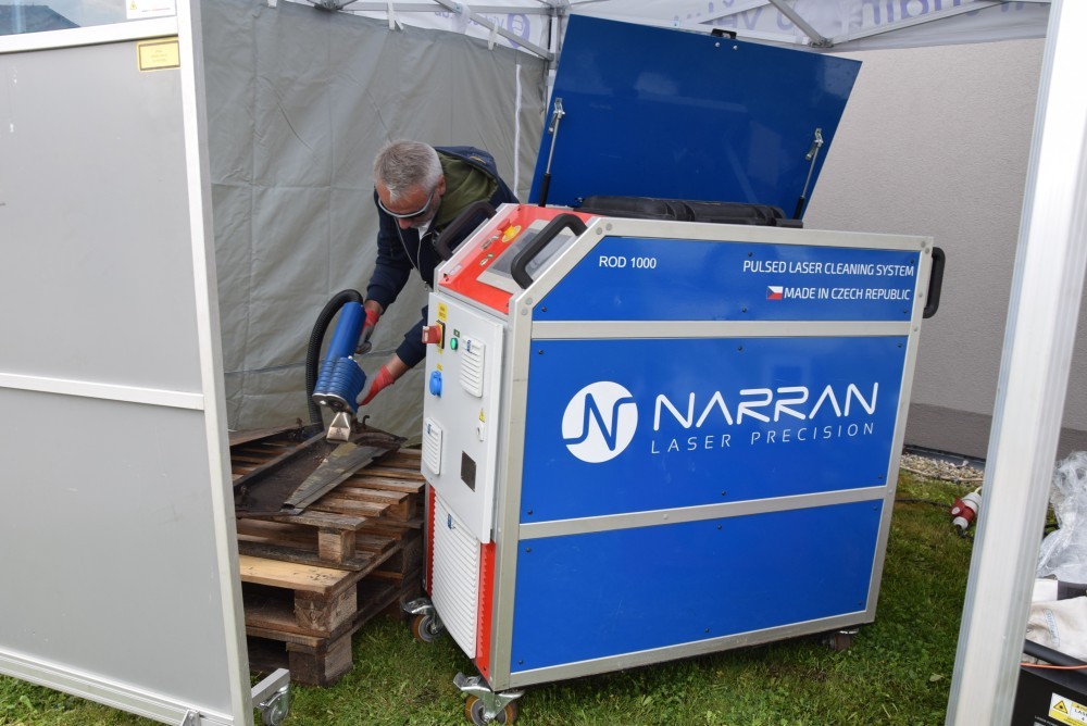 Ve druhé praktické části workshop nabízel možnost si v praxi vyzkoušet laserové čištění různých povrchů a laserové svařování. Někteří účastníci otestovali čištění laserem přímo na jejich dovozených firemních vzorcích.