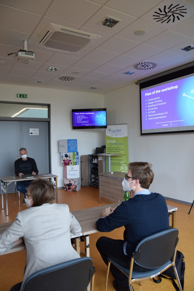 Dne 2.12.2021 se prostorách přednáškového sálu JVTP konala akce v rámci projektu Jihočeský Digi Hub pro manažery malých a středních podniků se zaměřením na základy umělé inteligence.Akce byla určena pro zástupce společností, které nemají dosud žádnou zkušenost s touto novou, rychle se rozvíjející technnologií AI. Workshop probíhal formou praktických příkladů a ukázek možností využití rozpoznávání obrazu, tvorbě jednoduché neuronové sítě. V další části si každý účastník vytvořil svého "chatbota" umožnujícího komunikaci se zákazníky. Dále proběhla ukázka využití regresní datové analýzy při zpracování velkého množství dat.