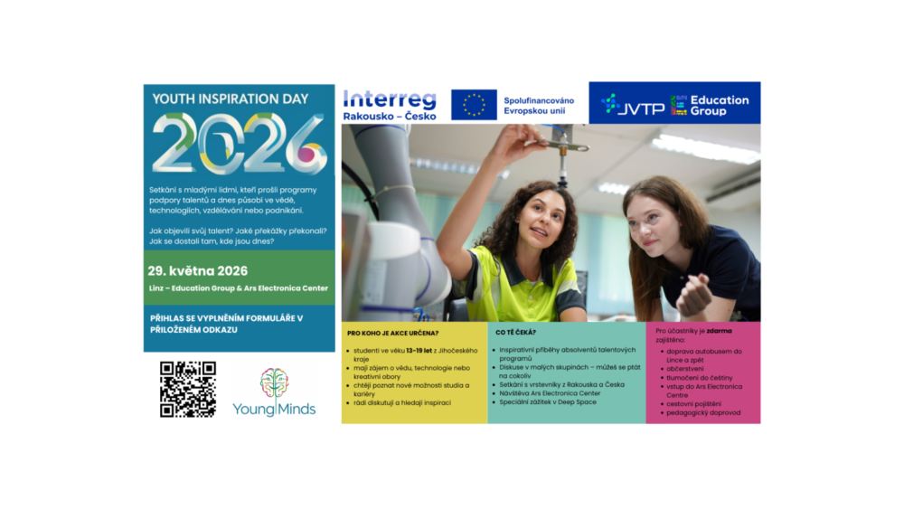 Inspirativní setkání mladých talentů, kteří už dnes mění svět vědy, technologií i podnikání. Přijď objevit svůj potenciál, poznat nové možnosti studia a kariéry a setkat se s vrstevníky z Česka i Rakouska.Objev svůj talent a budoucnost
